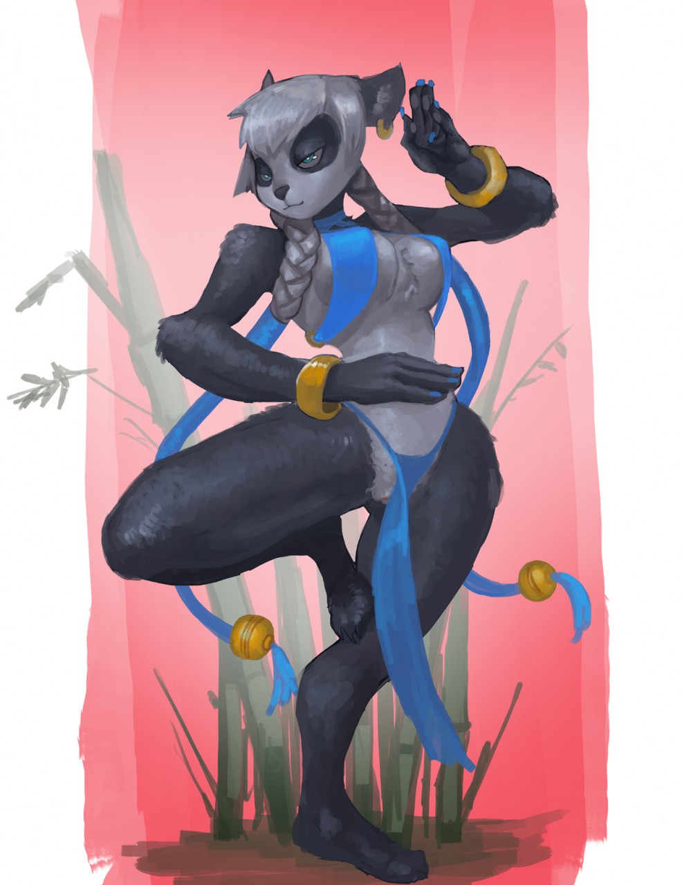 anthroareolabamboobarefootbearbig breastsblack furblue clawsblue eyesbraided hairbreastsclawsclothedclothingfemaleFlag for Deletionfurhairhalf-closed eyesloinclothlong hairmammalmei pannipple bulgepandapussyraised legskimpysmilesolowhite furwhite hair