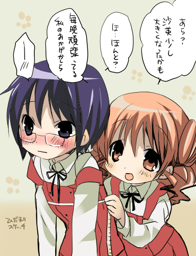 una (dpaxg), artoria pendragon (fate), matou sakura, saber (fate), fate/stay night, fate (series), 00s, 2girls, ahoge, bikini, black eyes, blonde hair, blush, breasts, cleavage, cloud, hair ribbon, innertube, multiple girls, navel, one-piece swimsuit, outdoors, purple eyes, purple hair, ribbon, school swimsuit, short hair, sky, smile, string bikini, swim ring, swimsuit, wading, water, white one-piece swimsuit, white school swimsuit