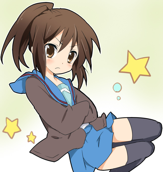 00s1girlangryblushbrown eyesbrown haircrossed armsfemale focusgenderswapgenderswap (mtf)ponytailschool uniformserafukuskirtsolothighhighszettai ryouiki
