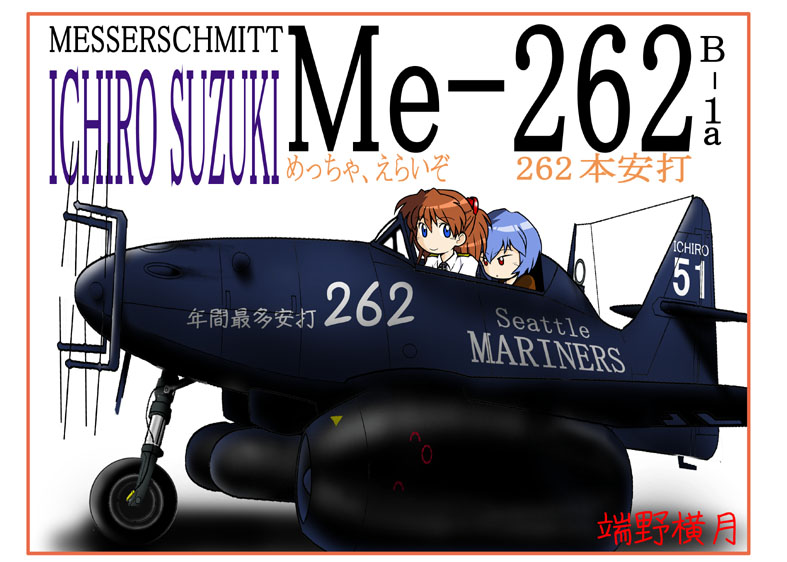 2girlsaircraftairplaneblue eyesblue hairborderbrown hairchibifrom sidehirschgeweih antennasinterface headset (evangelion)japanese textmilitary vehiclemultiple girlspropeller fighterred eyesred hairsimple backgroundvehicle focuswhite backgroundwhite borderworld war ii