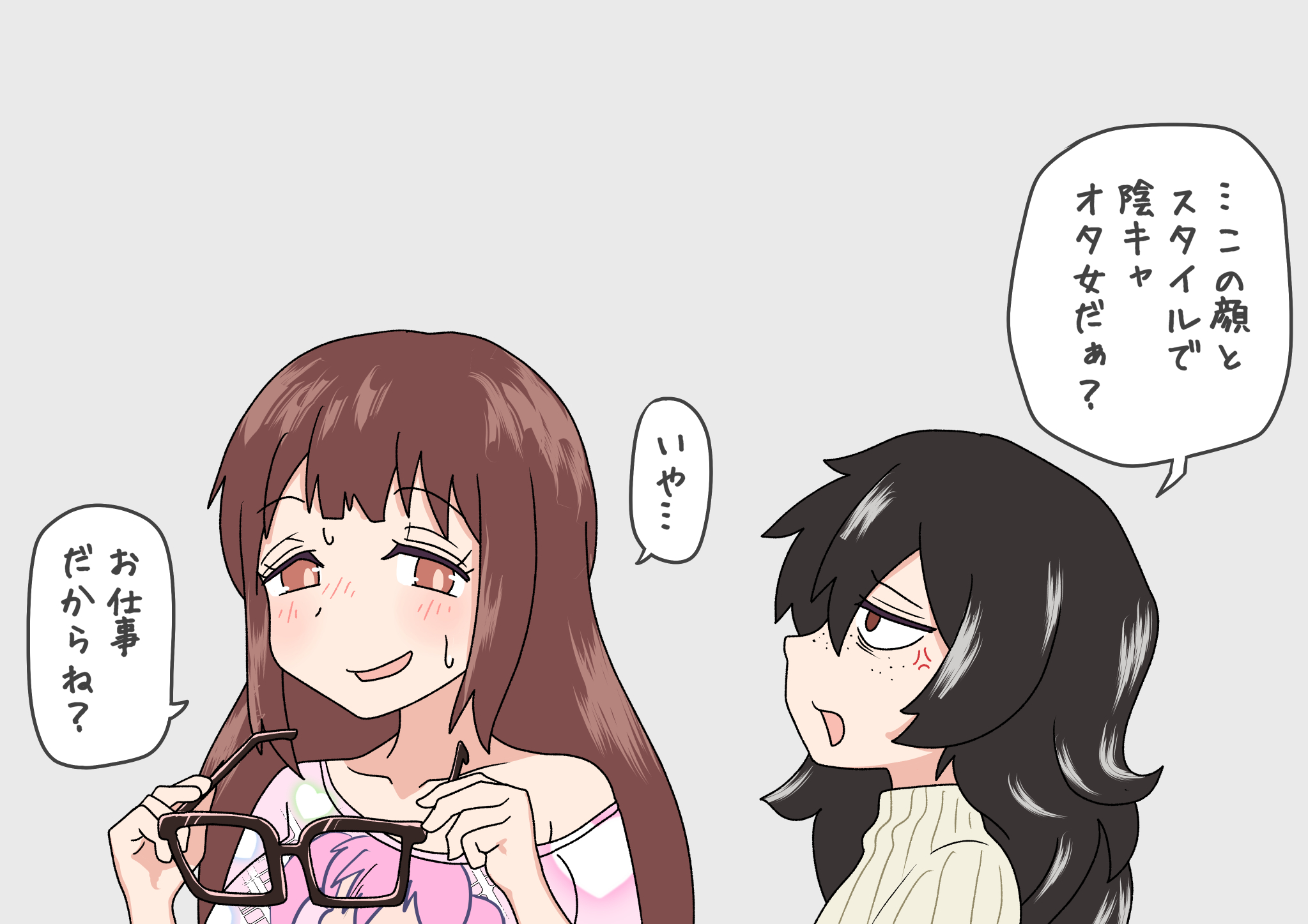 unkimo, oyama mahiro, onii-chan wa oshimai!, commentary, highres, 1girl, ahoge, alternate hairstyle, bare arms, bare legs, bare shoulders, black dress, blush, breasts, brown eyes, bun cover, clothes lift, double bun, dress, full body, hair between eyes, hair bun, hair ribbon, heart, high heels, long hair, looking at viewer, medium breasts, no panties, open mouth, outline, pelvic curtain, pelvic curtain lift, pink background, pink hair, ribbon, shoes, simple background, sleeveless, sleeveless dress, smile, solo, spread legs, squatting, straight-on, white outline
