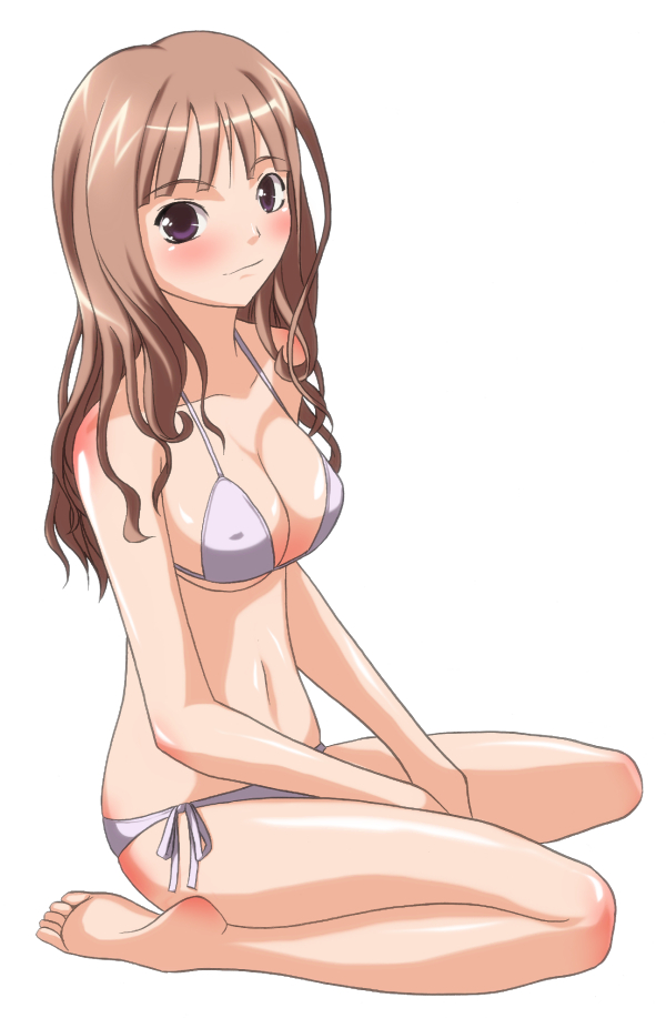 barefootbikinibreastsbrown haircleavagefeetlong hairpurple eyesside-tie bikini bottomsimple backgroundsoloswimsuitwhite backgroundwhite bikini