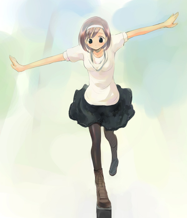 maka albarn, soul eater, 00s, 1girl, copyright name, dress, female focus, full body, greyscale, holding, holding weapon, long sleeves, looking at viewer, monochrome, polearm, scythe, short hair, solo, spread legs, weapon