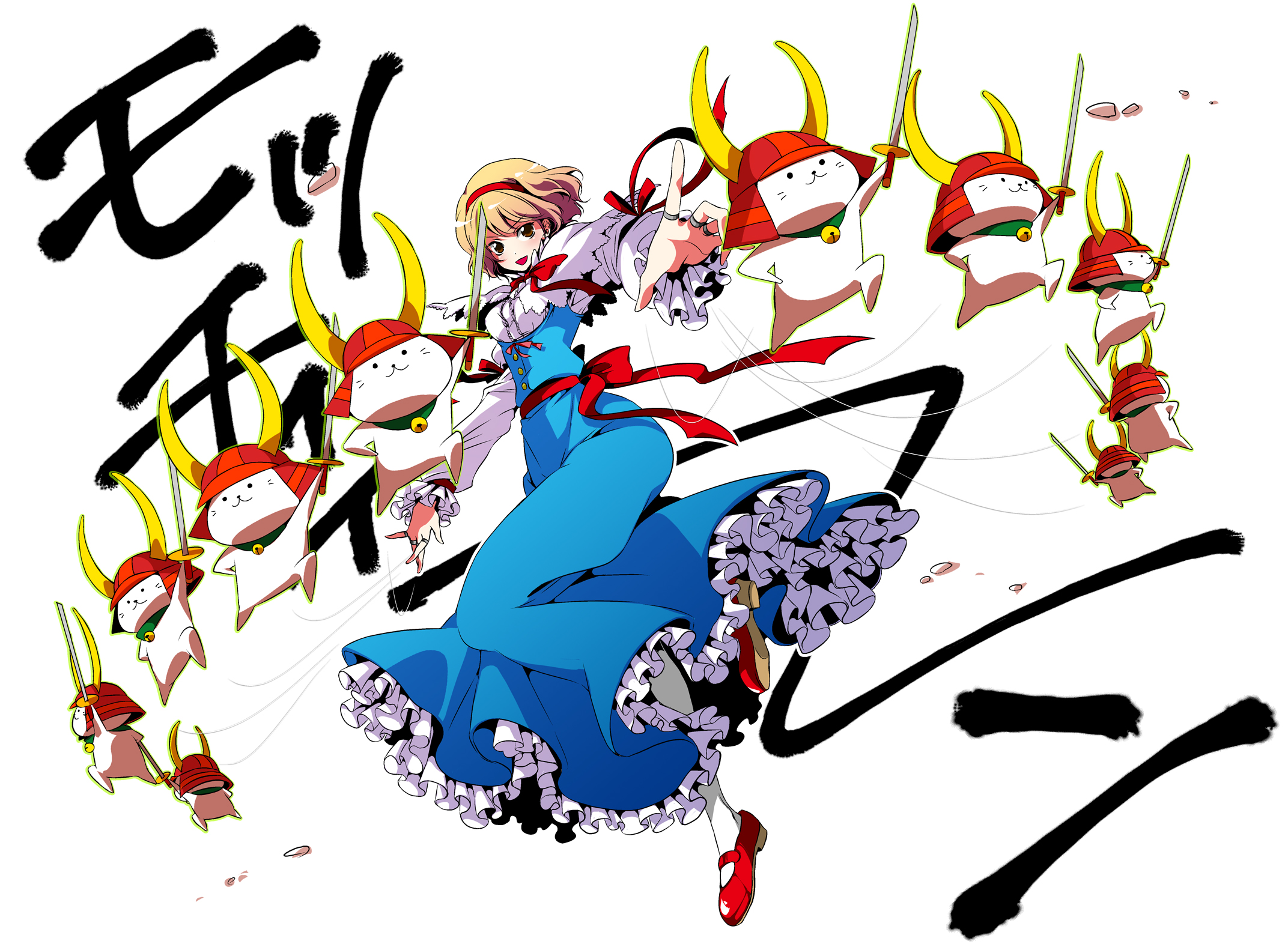 1girlblonde hairdollfemale focusfull bodyhairbandjewelrymary janesringshoesshort hairsolostringswordweaponwhite backgroundyellow eyes