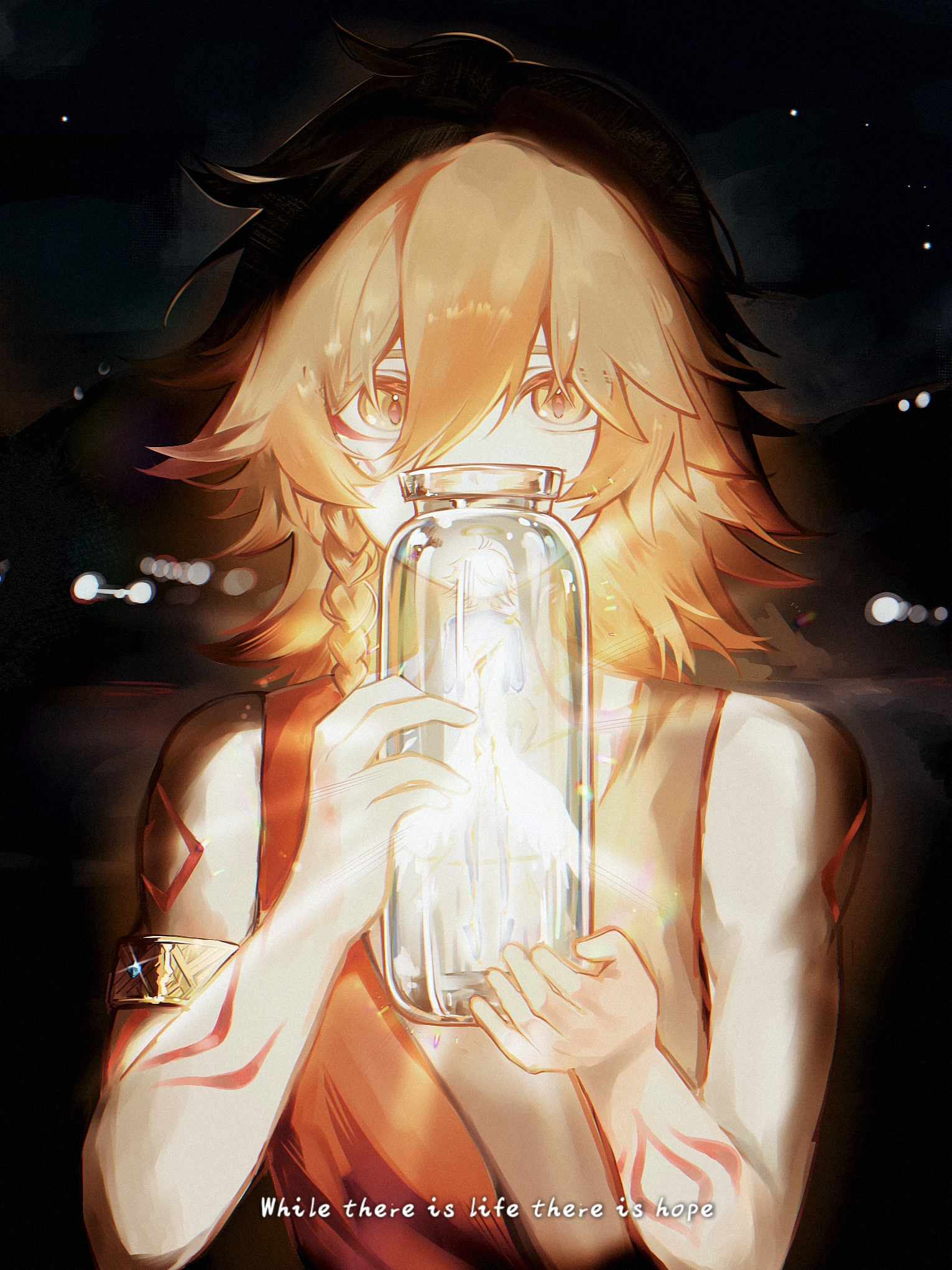 2boysaged downarm tattooarmletblack tank topblonde hairbottlebraidfacial tattoogradient hairhadanugi dousaholdingholding bottlejewelrymale focusmedium hairmulticolored hairmultiple boysofficial alternate costumeopen kimonored hairred tattooside braidtank toptattooxiaojin72708yellow eyes
