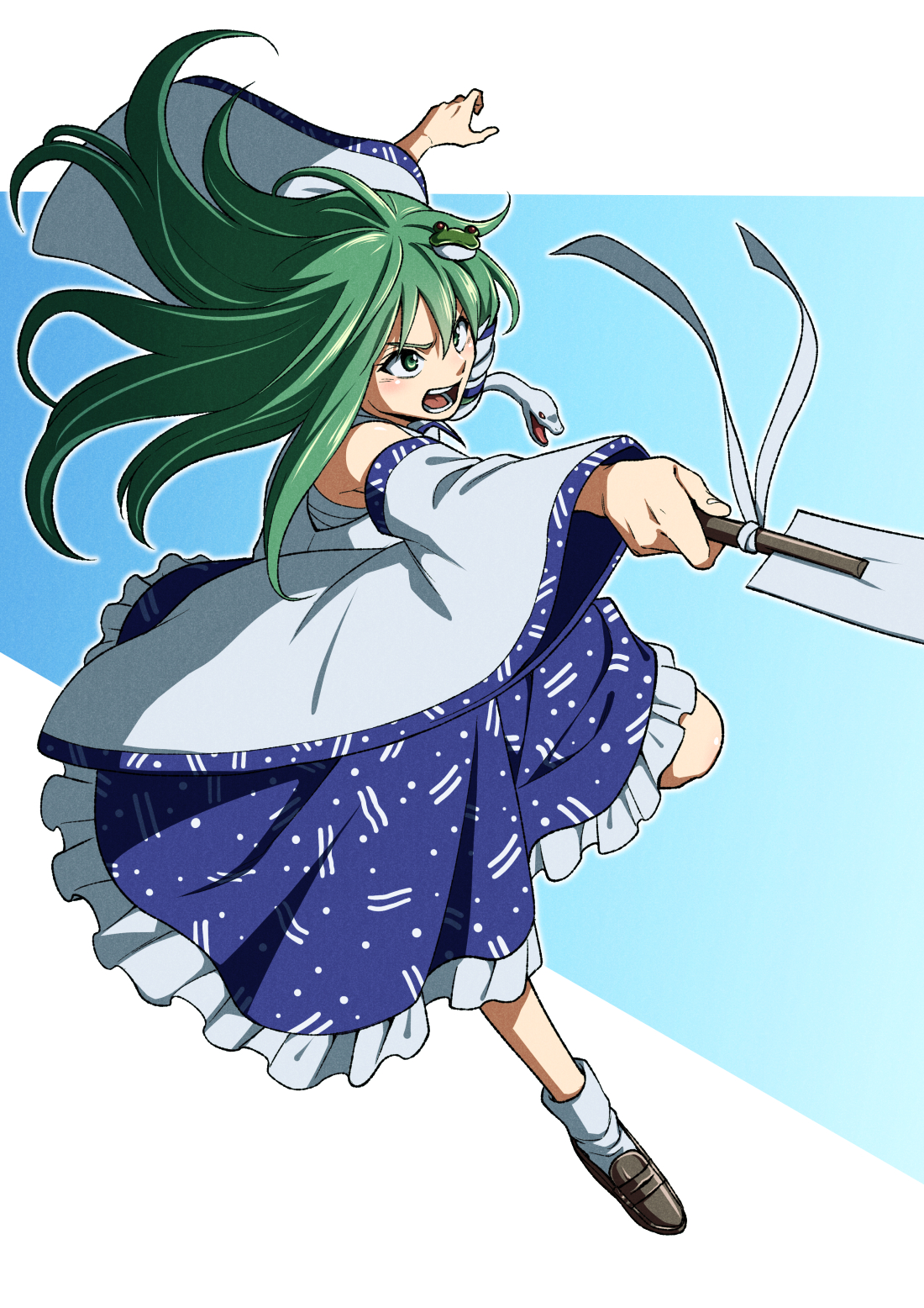 akagi gishou, kamina (ttgl), simon (ttgl), tengen toppa gurren lagann, 00s, 2girls, blue hair, genderswap, genderswap (mtf), multiple girls, oekaki, ponytail, sarashi, sword, weapon