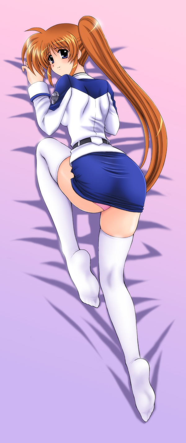 kantoku, bardiche (assault form) (nanoha), bardiche (nanoha), fate testarossa, fate testarossa (original form), lyrical nanoha, mahou shoujo lyrical nanoha, mahou shoujo lyrical nanoha a's, 00s, 1girl, blonde hair, female focus, miniskirt, skirt, solo, thighhighs, twintails
