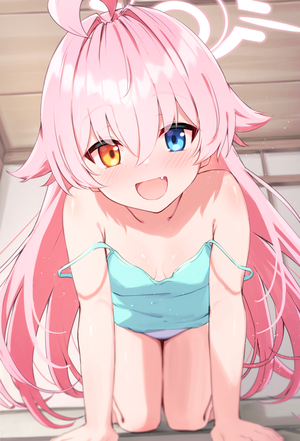 :d1girlahogeall foursalternate costumeaqua camisolearmpit creasebare armsbare shouldersblue eyesblurryblushbreastsbreasts apartcamisoledepth of fieldeyes visible through hairfangfull bodyhair between eyeshair intakeshalohappyheterochromiaindoorslong hairlooking at vieweropen mouthpantiespink hairpink halopovsmall breastssmilesolostraight-onstrap slipthighsunderwearvery long hairwhite pantiesyellow eyes