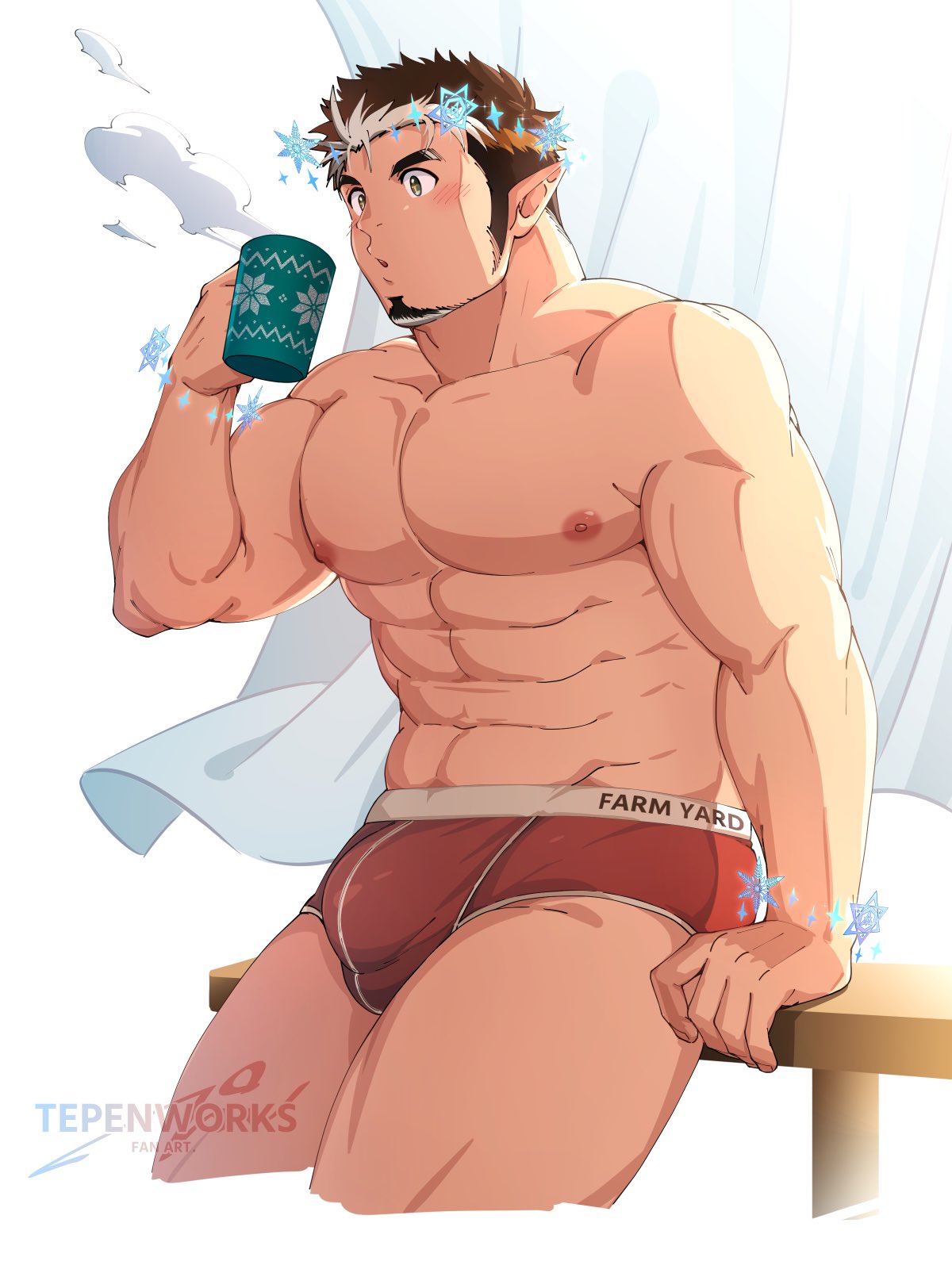 1boyabsagainst tablebarablowingblushbriefsbrown hairbulgecropped legscupcurtainsfacial hairgoateeholdingholding cuplarge pectoralslong sideburnsmale focusmale underwearmugmulticolored hairmuscularmuscular malepectoralspointy earsred male underwearshort hairsideburnssnowflakessolosparkling eyessteaming cupthick eyebrowsthick thighsthighstopless maletwo-tone hairunderwearwhite hair