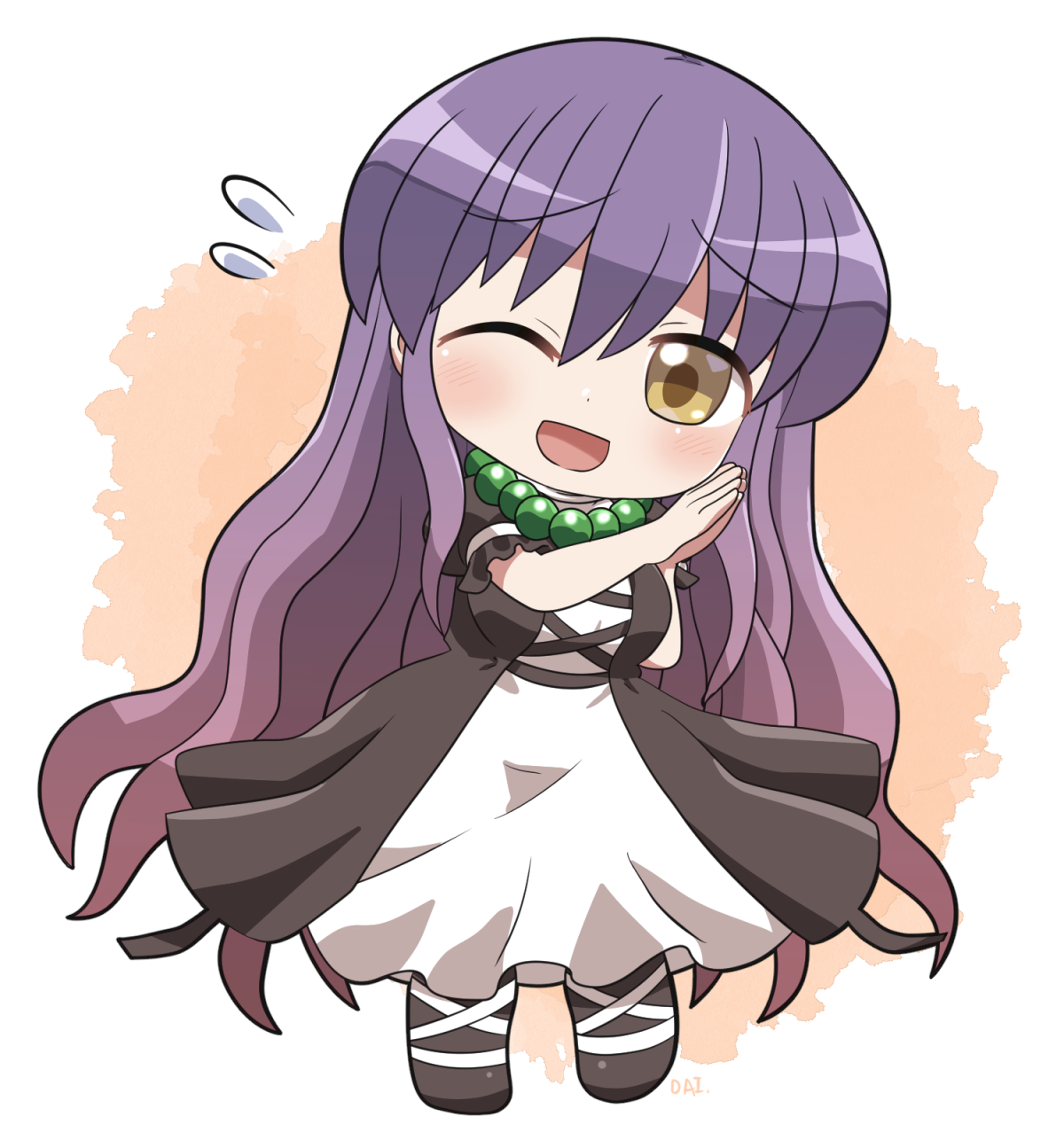 :d1girlbead necklacebeadsblack bootsblack dressblushbootschibichibi onlydressflying sweatdropsfull bodygradient hairjewelrylong hairlooking at viewermulticolored hairnecklaceone eye closedopen mouthown hands togetherpalms togetherpink hairpurple hairshort sleevessignaturesmilesolostandingvery long hairyellow eyes