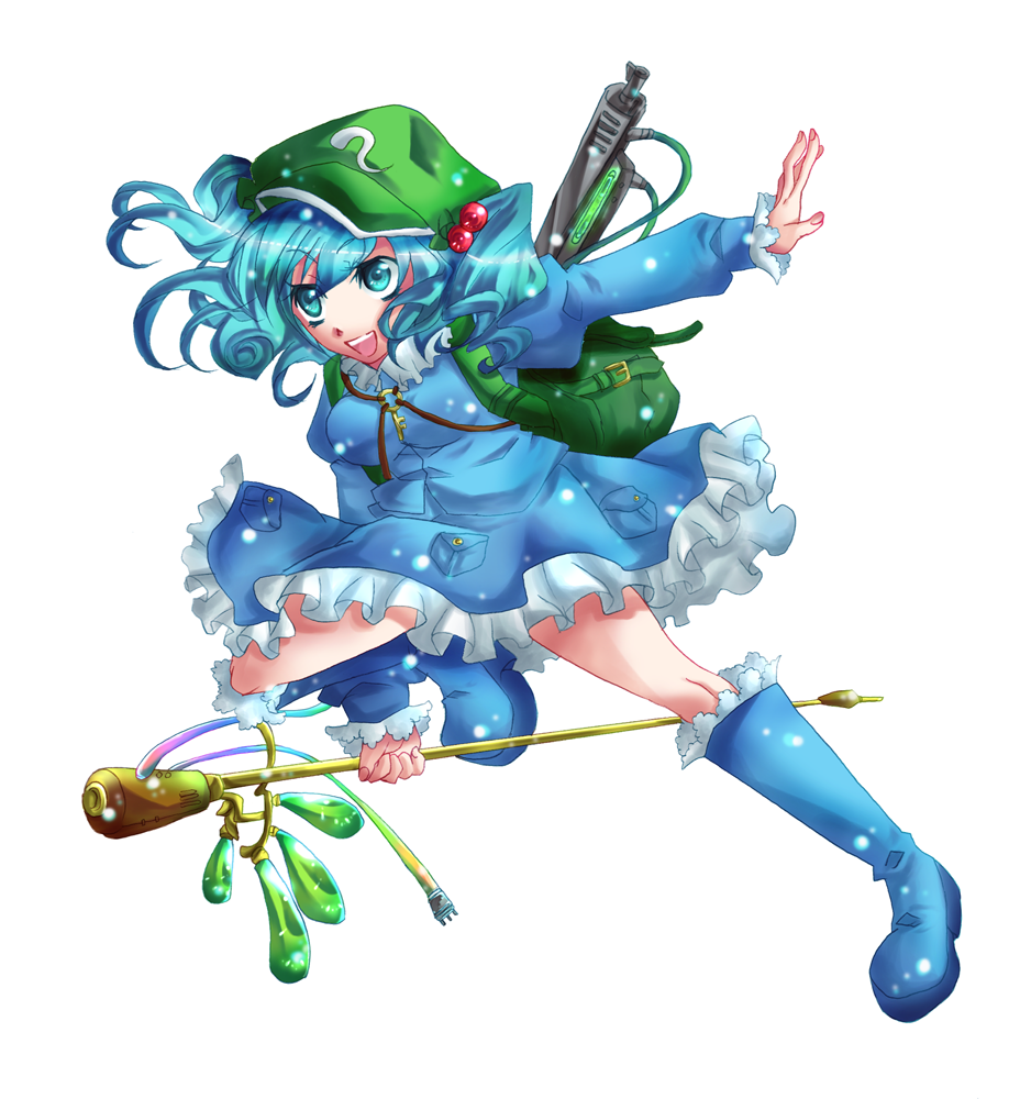 1girlbackpackbagblue eyesblue hairfemale focusgunhair bobbleshair ornamenthatkeymatching hair/eyesrandoserusolotwo side upweapon