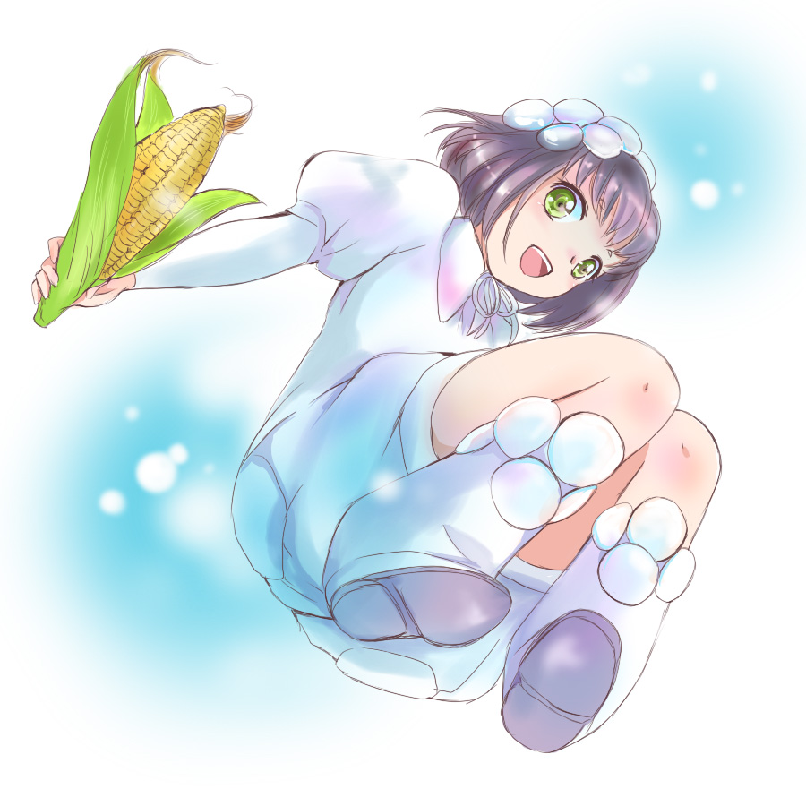 asagiri kazusa, original, highres, blue eyes, blush, boots, brown hair, cloud, cuffs, dress, fang, frills, jumping, knife, maid, pantyhose, ribbon, solo, twintails