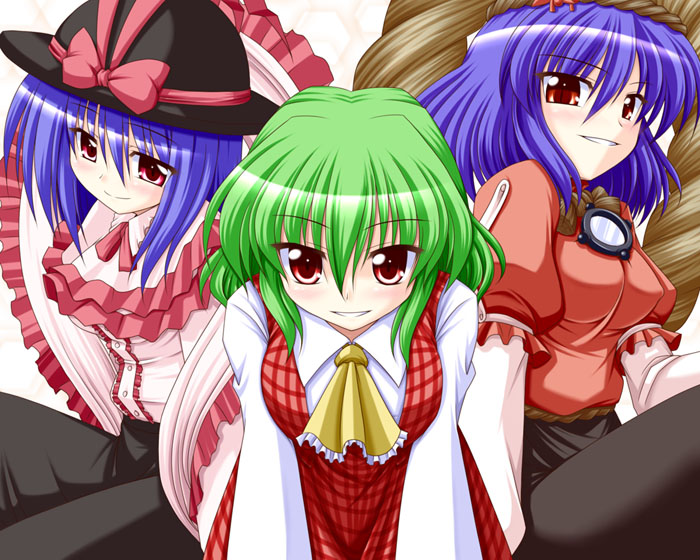 kamiya maneki, 2girls, animal ears, barefoot, bloomers, camisole, cat ears, cat tail, chemise, fang, fish, frilled panties, frilled thigh strap, frills, hair ornament, hairclip, kneeling, leg lift, lingerie, looking at viewer, monochrome, multiple girls, panties, rainbow gradient, standing, standing on one leg, tail, tareme, thigh strap, underwear