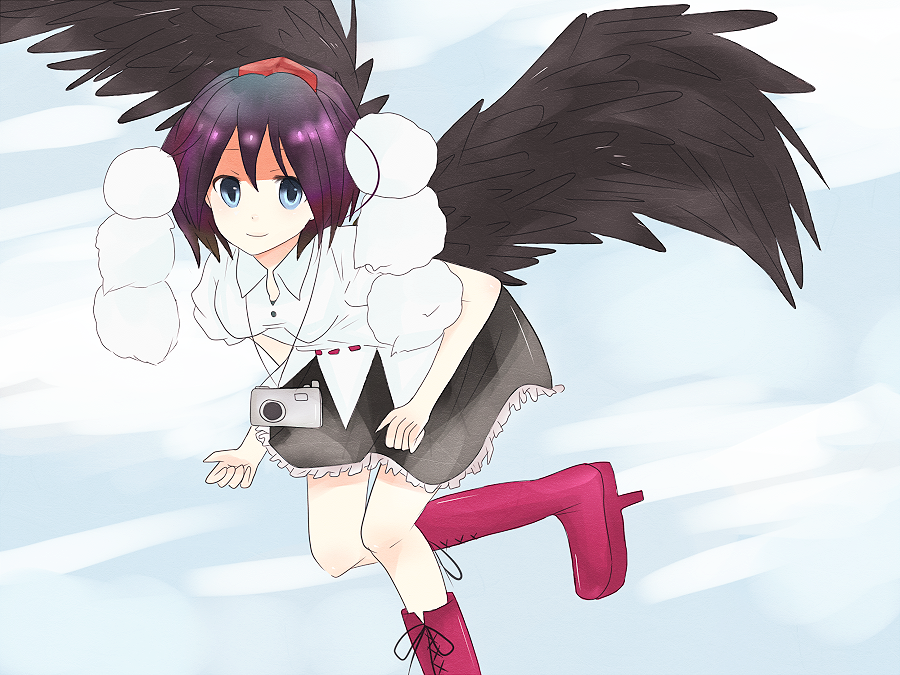 ff14hioo oo7, gaia (ff14), ryne waters, final fantasy, final fantasy xiv, 2girls, black hair, black shrug, blue eyes, blue pants, blue tank top, breasts, long hair, midriff, multiple girls, navel, one eye closed, orange hair, pants, shrug (clothing), simple background, tank top, white background, white shrug