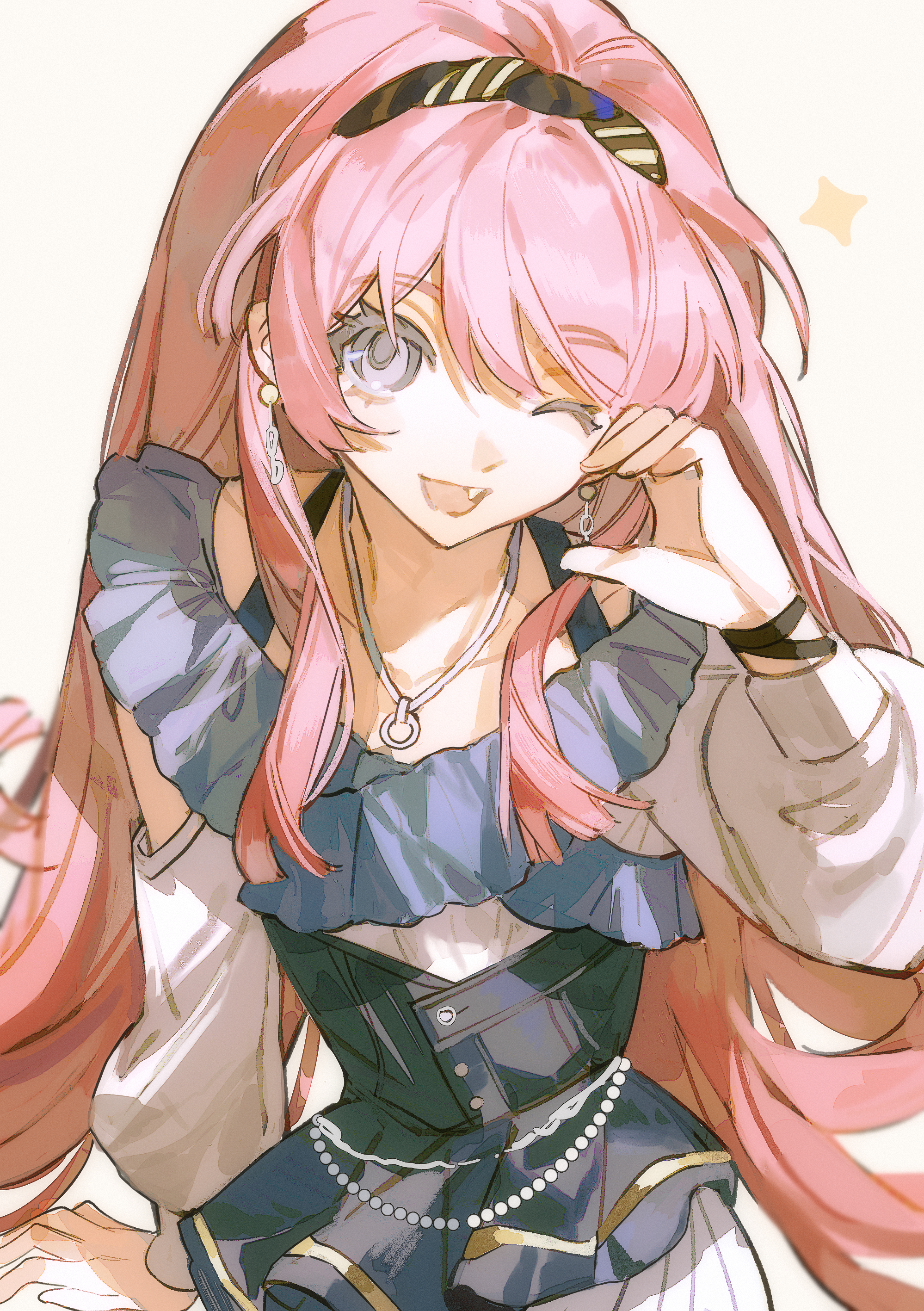 rubykong, cartethyia (wuthering waves), wuthering waves, absurdres, commentary, highres, 1girl, bare shoulders, black collar, blonde hair, blue eyes, breasts, closed mouth, collar, crown of thorns, earrings, jewelry, long hair, looking at viewer, medium breasts, multiple earrings, necklace, parted bangs, pointy ears, simple background, solo, tabard, tacet mark (wuthering waves), upper body, white background, white tabard
