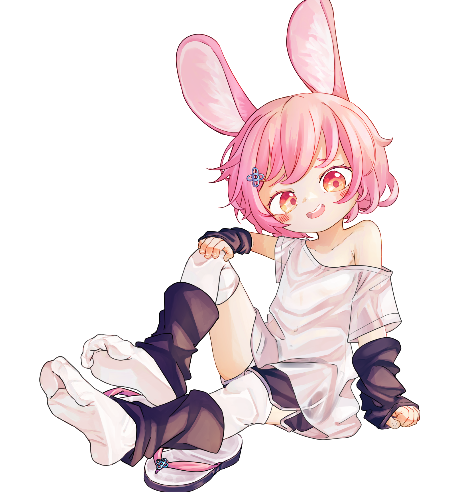 1girlanimal earsblack shortsfeetpink hairrabbit earsshirtshortssimple backgroundsolothighhighswhite background