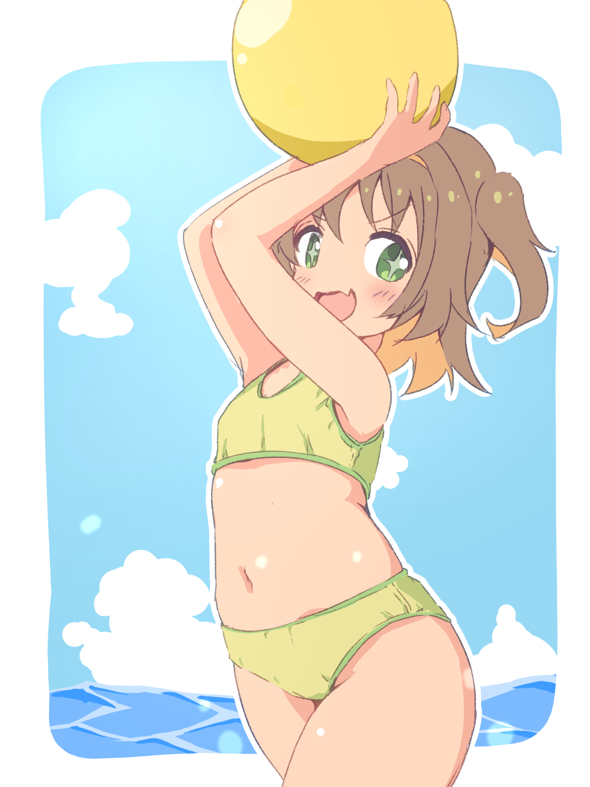 1boy1girlarms upballbikinibrown haircolored inner hairfanggreen eyesmulticolored hairnavelsoloswimsuit