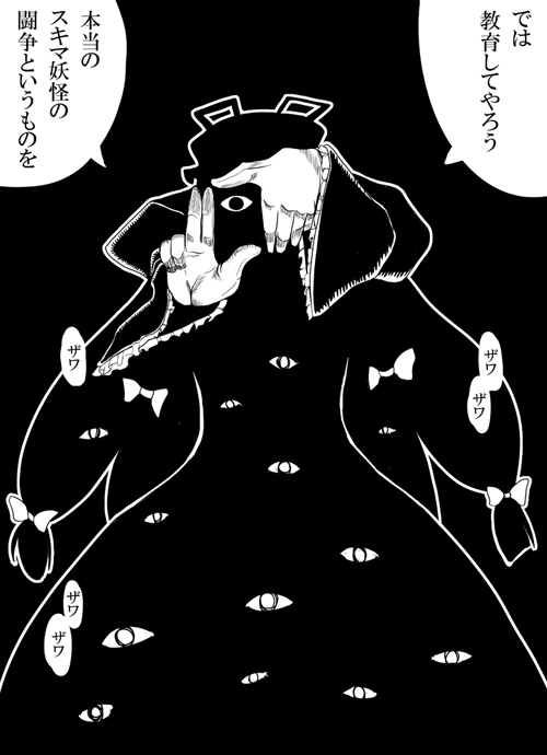 comiceye focusfemale focusgap (touhou)greyscalehair ribbonhatmonochromeparodyribbonsoloyou gonna get raped