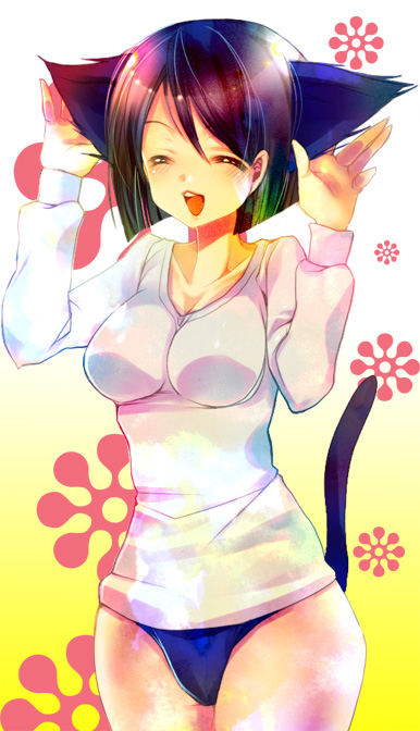 :d00s1girlanimal earsblack hairblushbreastsburumacat earscat tailclosed eyescollarbonecowboy shotfemale focusgym uniformhappylong sleevesopen mouthshort hairsmilesolotail