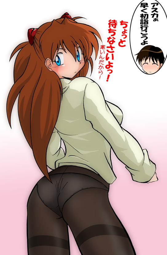 1boy1girlassblack pantyhoseblue eyescowboy shotcrotch seamfrom behindgradient backgroundlong hairlooking backorange hairpantiespanties under pantyhosepantyhosepantylinesretro artstylespeech bubblestandingthighband pantyhoseturtlenecktwo side upunderwear