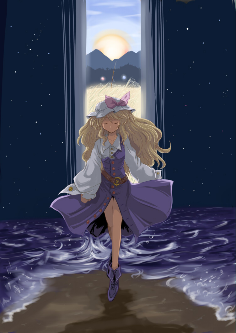 cruccu, original, 1girl, apron, blonde hair, blue eyes, blunt bangs, bob cut, briefcase, cloud, day, dress, female focus, frills, from side, gloves, long sleeves, maid, maid apron, maid headdress, outdoors, pantyhose, ribbon, scenery, short hair, sky, solo, standing, suitcase, umbrella, white pantyhose