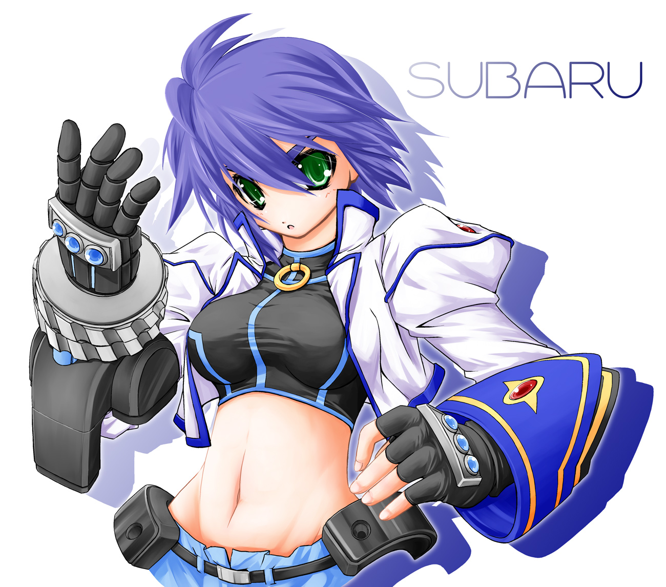 mayo riyo, nagi, kannagi, bad id, bad pixiv id, 00s, 1girl, armpits, bent over, blue hair, blunt bangs, blush, bottomless, breasts, cleavage, downblouse, female focus, flat chest, hair tubes, hairband, long hair, no bra, no panties, no pants, purple eyes, skirt, smile, solo, wading, water, wet