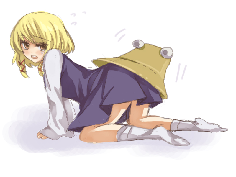 1girlall foursasshatblonde hairdressfemale focushatopen mouthorange eyespurple dresssidelockssolowide sleeves
