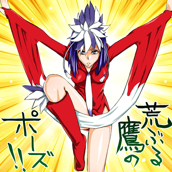 1girlbootscensoredconvenient censoringfeathersfemale focushoodhoodielong sleevesno pantiespurple eyespurple hairshort hairsolo
