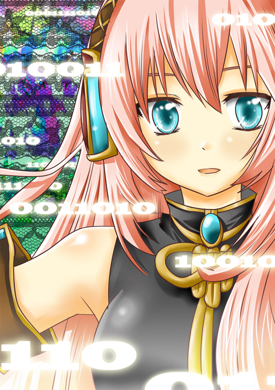 :d1girlaqua eyesbare shouldersbinaryblue gemstoneblushbreastsbroochdetached sleevesfemale focusgemglowingheadphonesjewelrylong hairlooking at viewermedium breastsopen mouthpink hairsleevelesssmilesolotsurimeupper body
