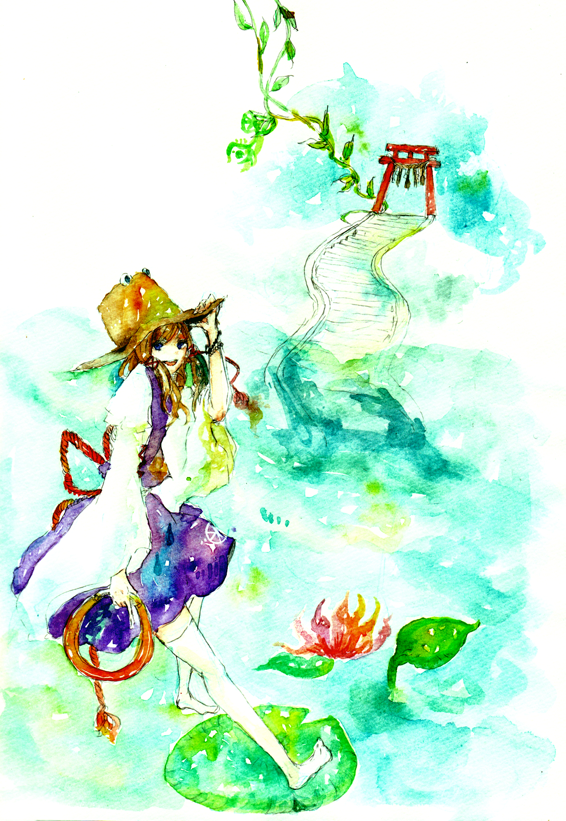 1girlblonde hairblue eyescolorfulfemale focusflowergradient backgroundhatlily padlotusnatureoutdoorsplantribbonropeskirtsolostairsthighhighstoriiwhite background