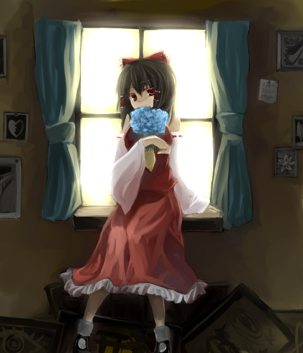 usa ooyake, usakou, flandre scarlet, touhou, 1girl, blonde hair, blouse, collared shirt, female focus, hat, mob cap, red eyes, shirt, simple background, solo, white background, white hat, white shirt, white wrist cuffs, wrist cuffs