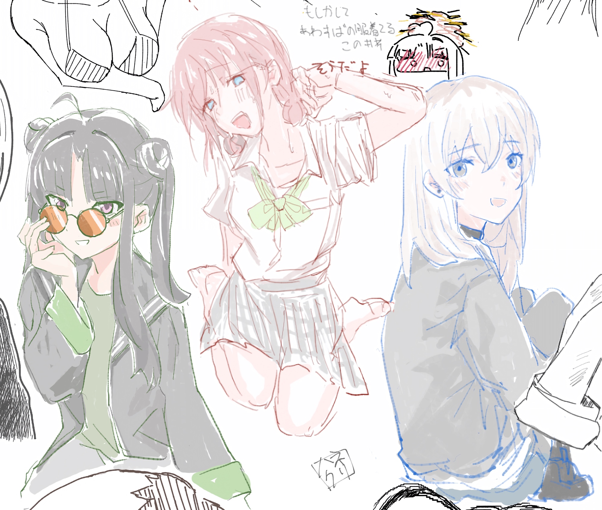 3girlsahogebarefootblack hairblack shirtblue eyesbowbowtiebreastsbrown haircleavagedouble bungreen bowgreen bowtiegreen shirtgrey eyesgrey hairgrey skirthair bunlong hairlow twintailsmulticolored hairmultiple girlsopen clothesopen shirtorange-tinted eyewearparted bangspurple eyesroots (hair)sailor collarsailor shirtshirtshort hairshort twintailssidelocksskirtsweattinted eyeweartwintailswhite shirt