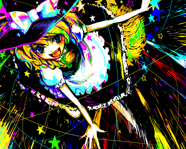 1girlblonde hairblue eyesbraidbroombroom ridingcolorfulfemale focushatsolostar (symbol)witchwitch hat