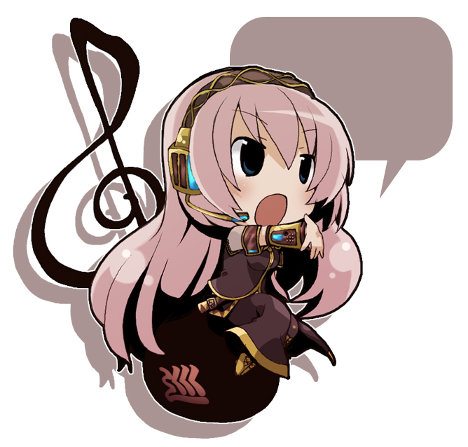 1girlchibifemale focusheadsetlong hairmusicmusical notepink hairsingingsolotreble clefvery long hair