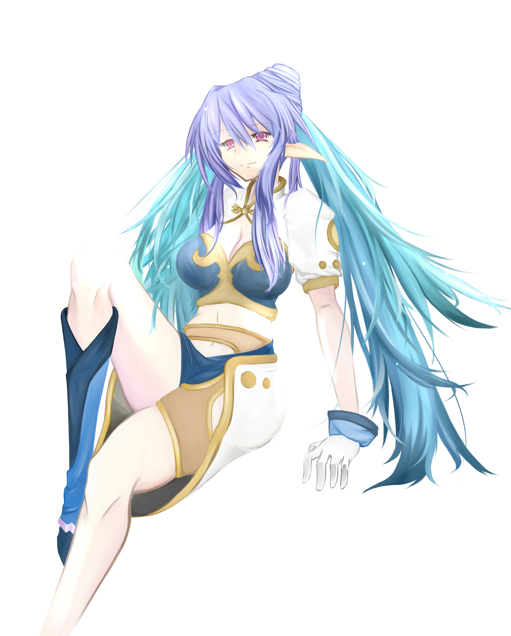 00s1girlantenna hairblue hairbootsfemale focusglovesknee bootspointy earsred eyesshoessingle shoesolowhite gloves