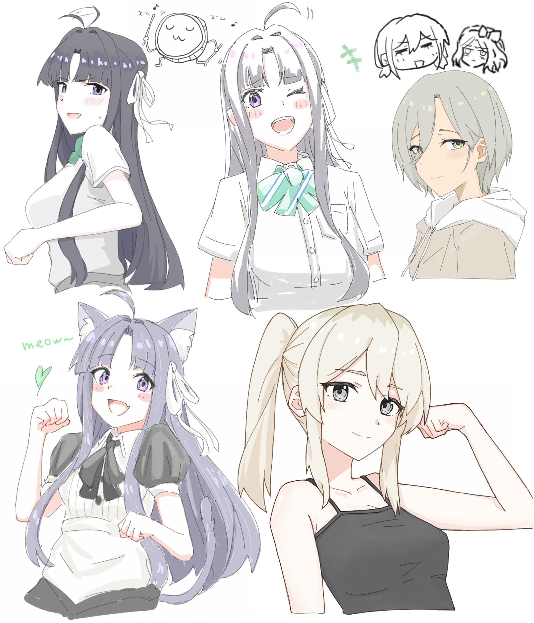 5girlsahogeahoge waganimal earsarm upblack camisoleblack chokerblack dressblack hairblushbreastsbrown eyesbrown hairbrown jacketcamisolecat earscat girlchokercleavageclosed mouthcollarbonedressdress shirtexpressive hairgrey eyeshair between eyeshair ribbonhoodhood downjacketkemonomimi modelong hairlong hair between eyeslooking at viewermaidmedium breastsmulticolored hairmultiple girlsone eye closedopen mouthparted bangsponytailpuffy short sleevespuffy sleevespurple eyesribbonroots (hair)shirtshort hairshort sleevessidelocksspaghetti strapsweatdroptogenashi togeariupper bodywhite ribbonwhite shirt