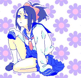 edward wong hau pepelu tivrusky iv, ein (cowboy bebop), cowboy bebop, absurdres, highres, 1990s (style), 1girl, barefoot, collar, dog, female focus, goggles, happy, looking at viewer, red hair, running, shirt, shorts, smile, text focus, white background, white shirt, yellow eyes