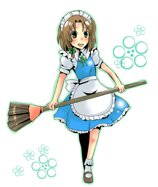 1girlbraidbroombrown haircosplaycrossdressingcrossdressing (mtf)female focusfull bodygreen eyesizayoi sakuya (cosplay)maidshort hairsimple backgroundsolowhite background