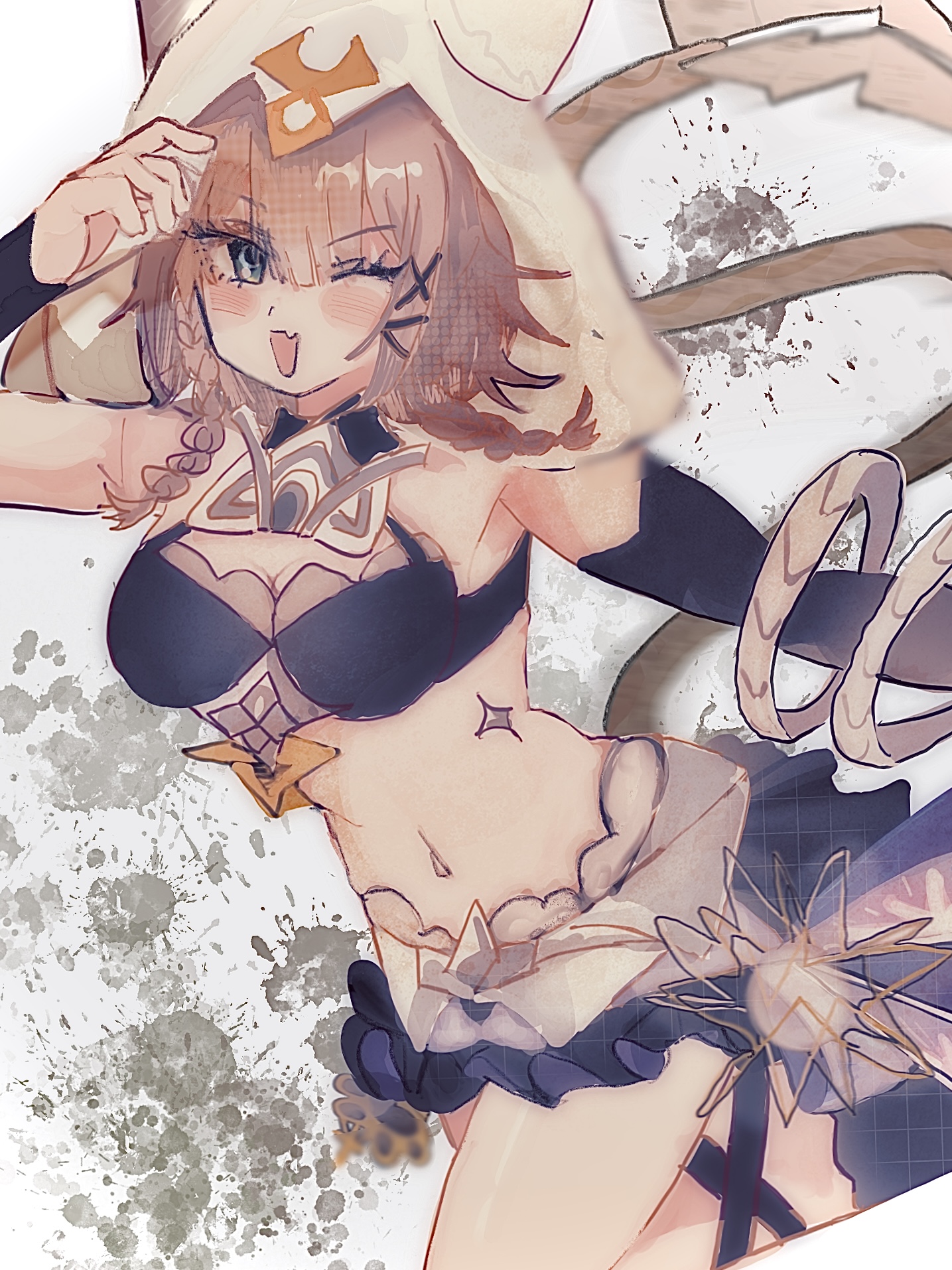 fate testarossa, lyrical nanoha, mahou shoujo lyrical nanoha, mahou shoujo lyrical nanoha strikers, 00s, 1girl, blonde hair, breasts, female focus, huge breasts, long hair, low-tied long hair, open clothes, open shirt, panties, panty pull, shirt, solo, thighhighs, underwear, very long hair