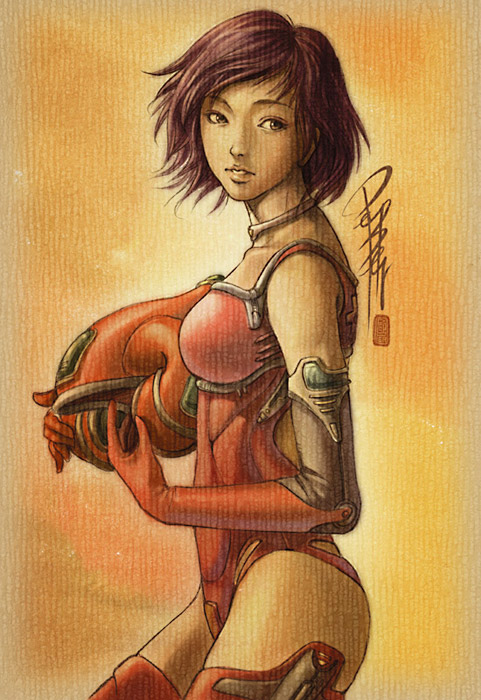 bodysuitbrown eyesbrown hairchokerelbow glovesgloveshelmetscience fictionshort hairsolothighhighs