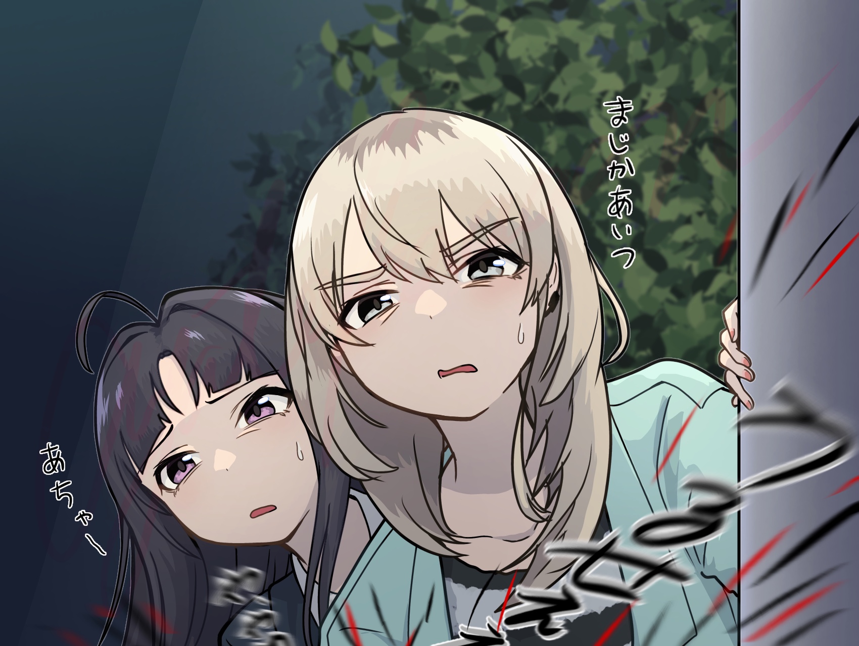 kawamochi (kawauti919), anastasia (idolmaster), idolmaster, idolmaster cinderella girls, 1girl, @ @, blue eyes, blush, food in mouth, grey hair, grey shirt, hair between eyes, jacket, looking at viewer, mouth hold, nose blush, open clothes, open jacket, outstretched arms, reaching, reaching towards viewer, shirt, simple background, solo, upper body, white background, white jacket