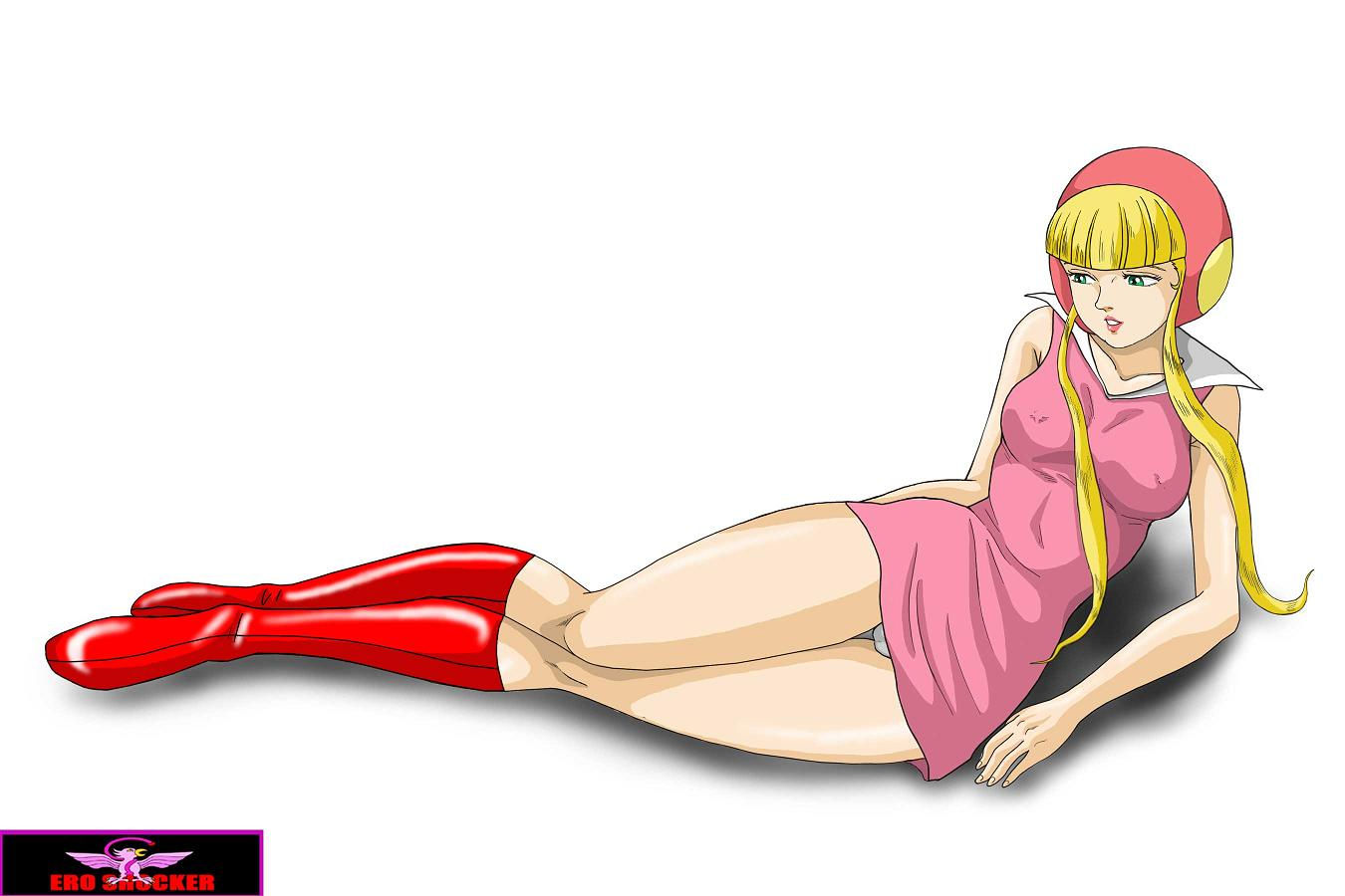1girlblonde hairbootsbreastscovered erect nipplesfemale focusgreen eyeshelmetlong hairpantiesred bootsrobotsolounderwearvery long hairwhite panties