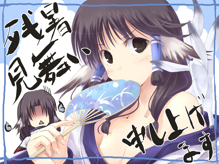 00saged upanimal earsblack hairbrown eyesbrown hairdog earshand fanopen clothesopen shirtpaper fanshirtuchiwazanshomimai