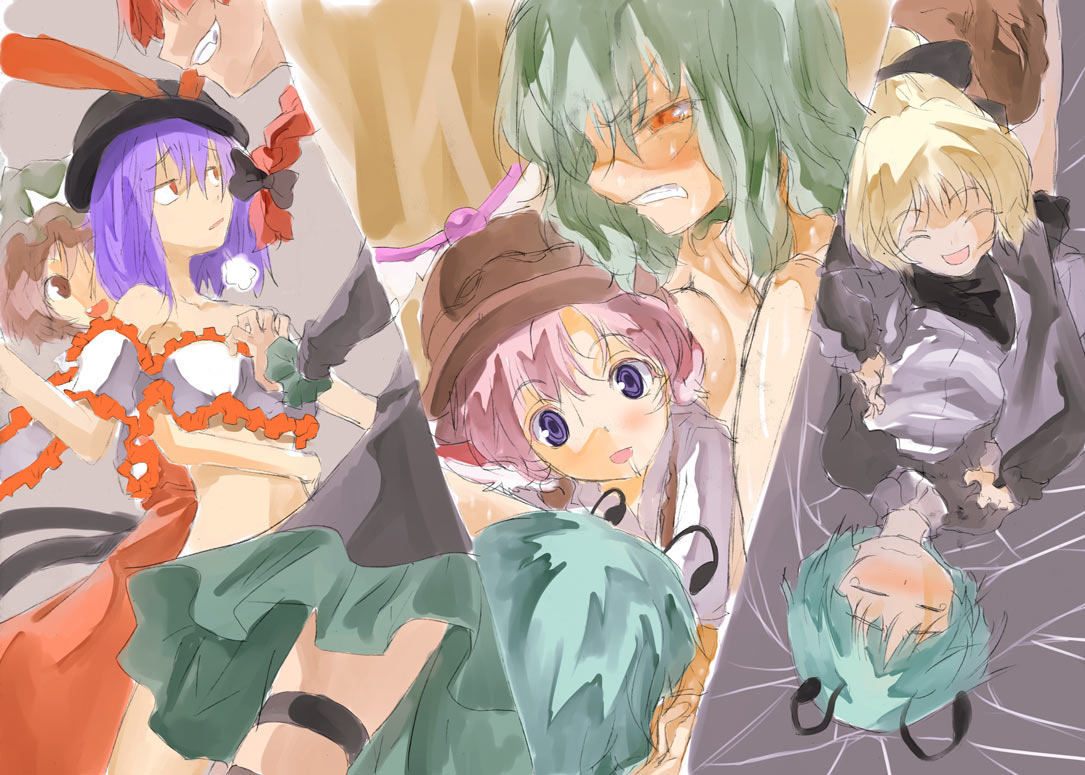 1boy6+girlsantennaeblonde hairboredbraidbreastsbrown eyesbrown haircat tailclenched teethclosed eyesdressfangfemale focusfrillsfrom behindgreen hairhathat ribbonlyingmultiple girlsmultiple tailsopen mouthpink hairpurple eyespurple hairred eyesred hairribbonsalivashort hairsilksmilespider webtailtearsteethwavy mouthyou gonna get rapedyuri