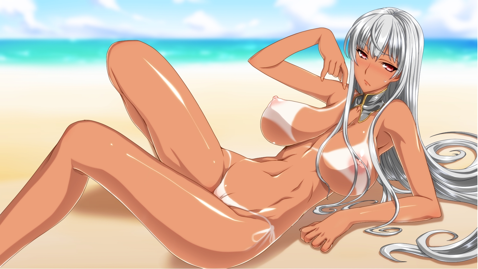 beachblushbreastsfemaleFlag for Deletiongray hairhuge breastslegslong hairlyingnavelnipplesnudeoceanon backoutdoorspink eyespuffy nipplespussyred eyessilver hairsolosummertantan linestanline