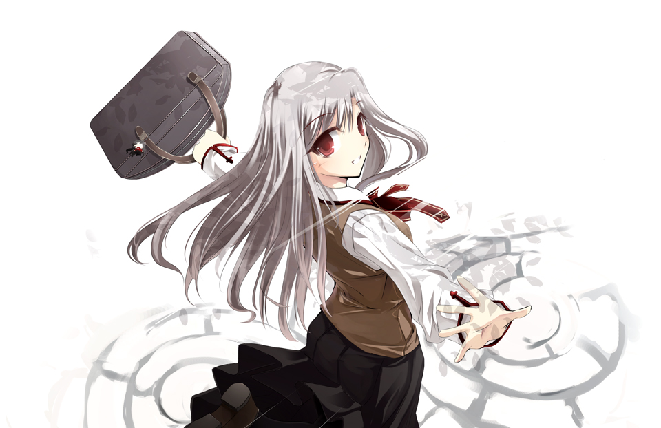 00sbaggrey hairhomurabara academy school uniformlong hairlooking backred eyesschool uniformskirtsmilesolowhite hair