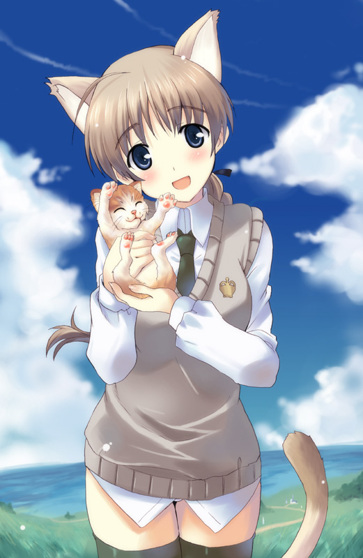 00s1girlanimal earsbraidcatcat earscat tailfemale focusnecktiepantiessingle braidsolosweatertailthighhighsunderwear