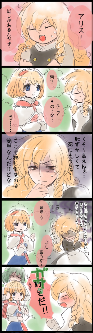 3girlsblonde hairblushclosed eyescomicconfessioncovering own earsfemale focushand on own chinmixed martial artsmultiple girlsshaded faceyuri