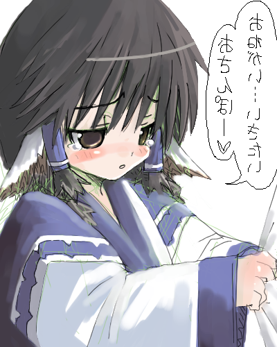 00sanimal earsblushbrown eyesbrown hairjapanese clotheskimonomirrored textoekakisexually suggestiveshort hairsolotears
