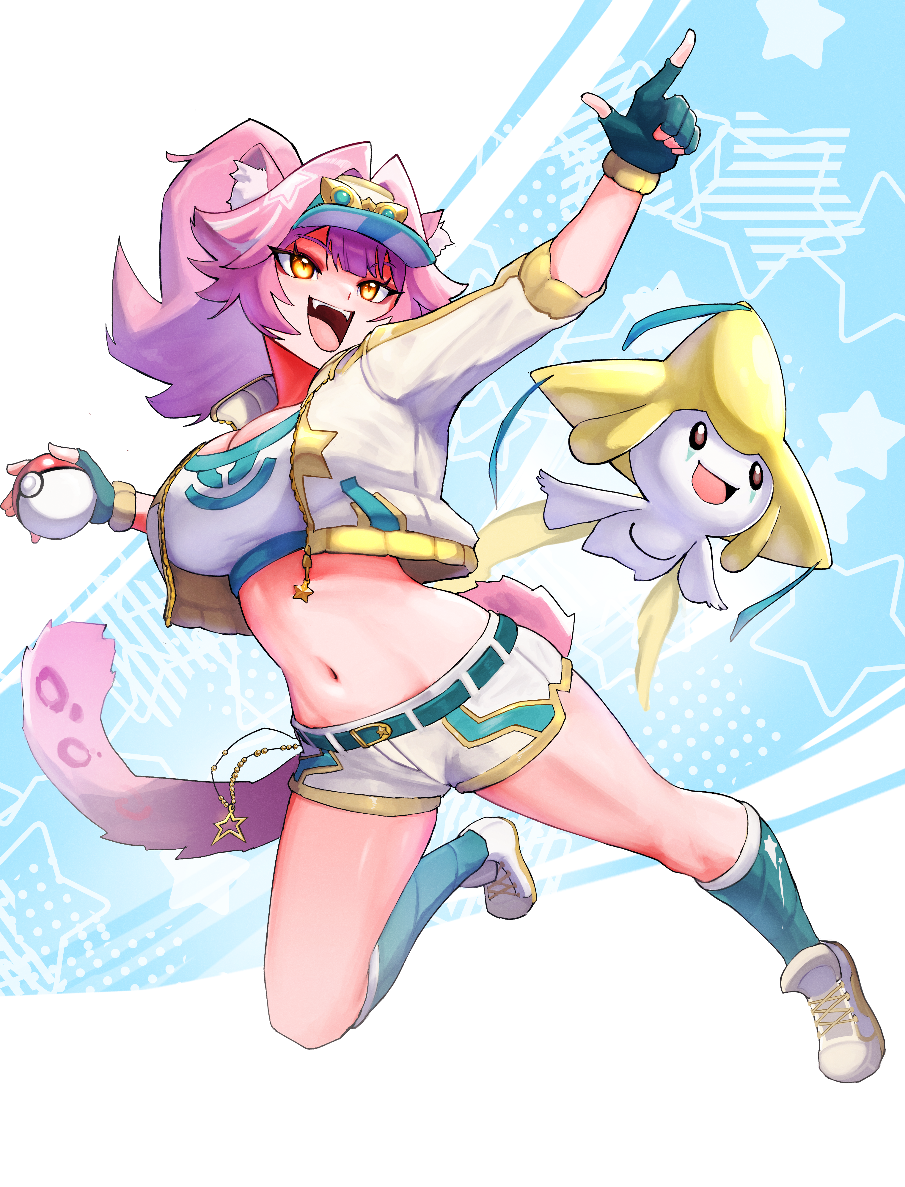 :d1girlalternate costumeanimal ear fluffanimal earsaqua beltaqua glovesaqua socksbeltbreastscleavagecrop topcropped jacketeyelashesfangsfingerless glovesfull bodygen 3 pokemongloveshair intakeshatholdingholding poke balljacketlegendary pokemonlong hairmidriffmulticolored hairmythical pokemonnavelopen clothesopen jacketopen mouthorange eyesoutstretched armpanther earspanther girlpanther tailpink hairpointingpoke ballpoke ball (basic)pokemon (creature)ponytailshirtshoesshort shortsshortssmilesocksstar (symbol)streaked hairtailteethupper teeth onlyvirtual youtubervisor capwhite hairwhite hatwhite jacketwhite shirtwhite shoeswhite shorts